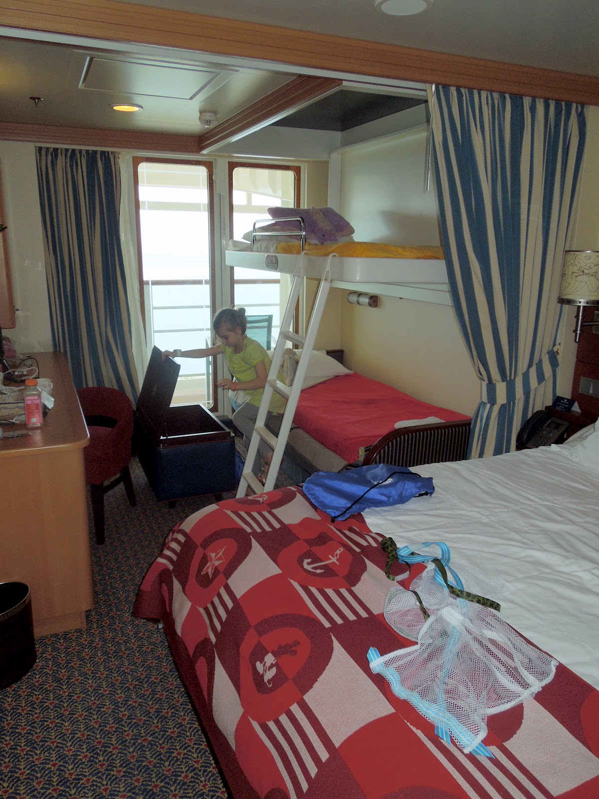 Notice the room divider (a curtain). It was a first for us-all in one room. |